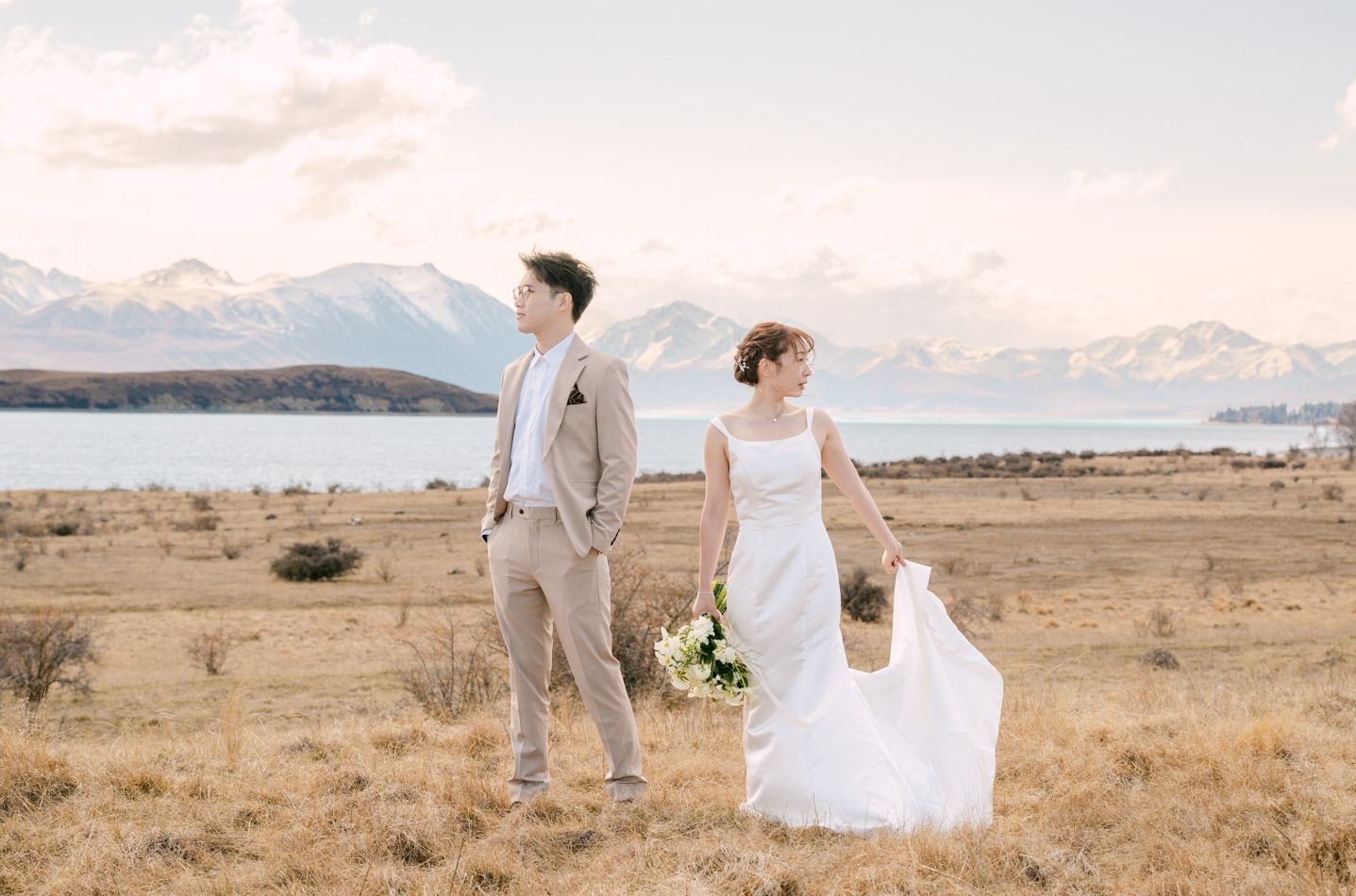 Lake Tekapo is your place. With turquoise waters, golden tussock hills, and the Southern Alps rising dramatically in every direction, Tekapo offers an otherworldly backdrop for couples who crave something wild, intimate, and deeply personal.